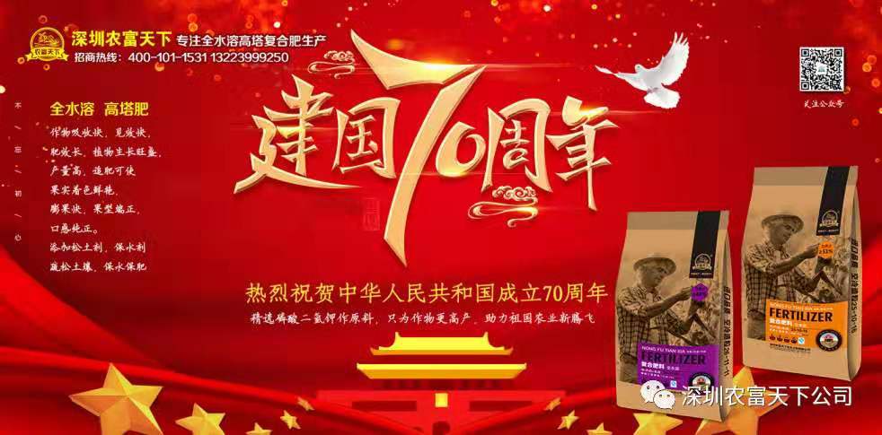 和平年代,我們似乎做不出什么大事件就不能致敬祖國。祖國不需要我們致敬,祖國需要的是守護,在平凡的崗位,做最好的自己,就是對祖國最深的熱愛,深圳農富天下始終堅持把農民朋友的利益放在首位,始終堅持“以人為本,嚴謹務實”的經營理念,用豐收回報每一份信任,用每一份豐收,助力祖國農業新騰飛,致敬祖國70周年生日。